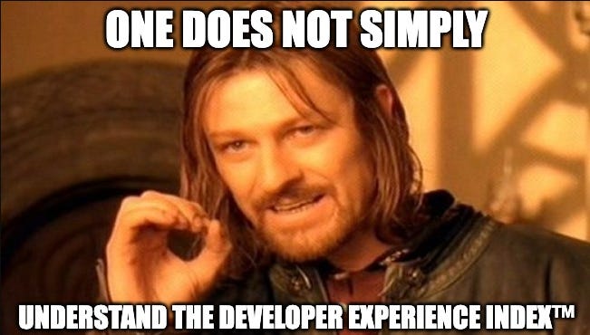 Perhaps the most egregious example in Core 4 is the Developer Experience Index:™ a proprietary composite metric based on survey responses that fails virtually every criterion for meaningful measurement: