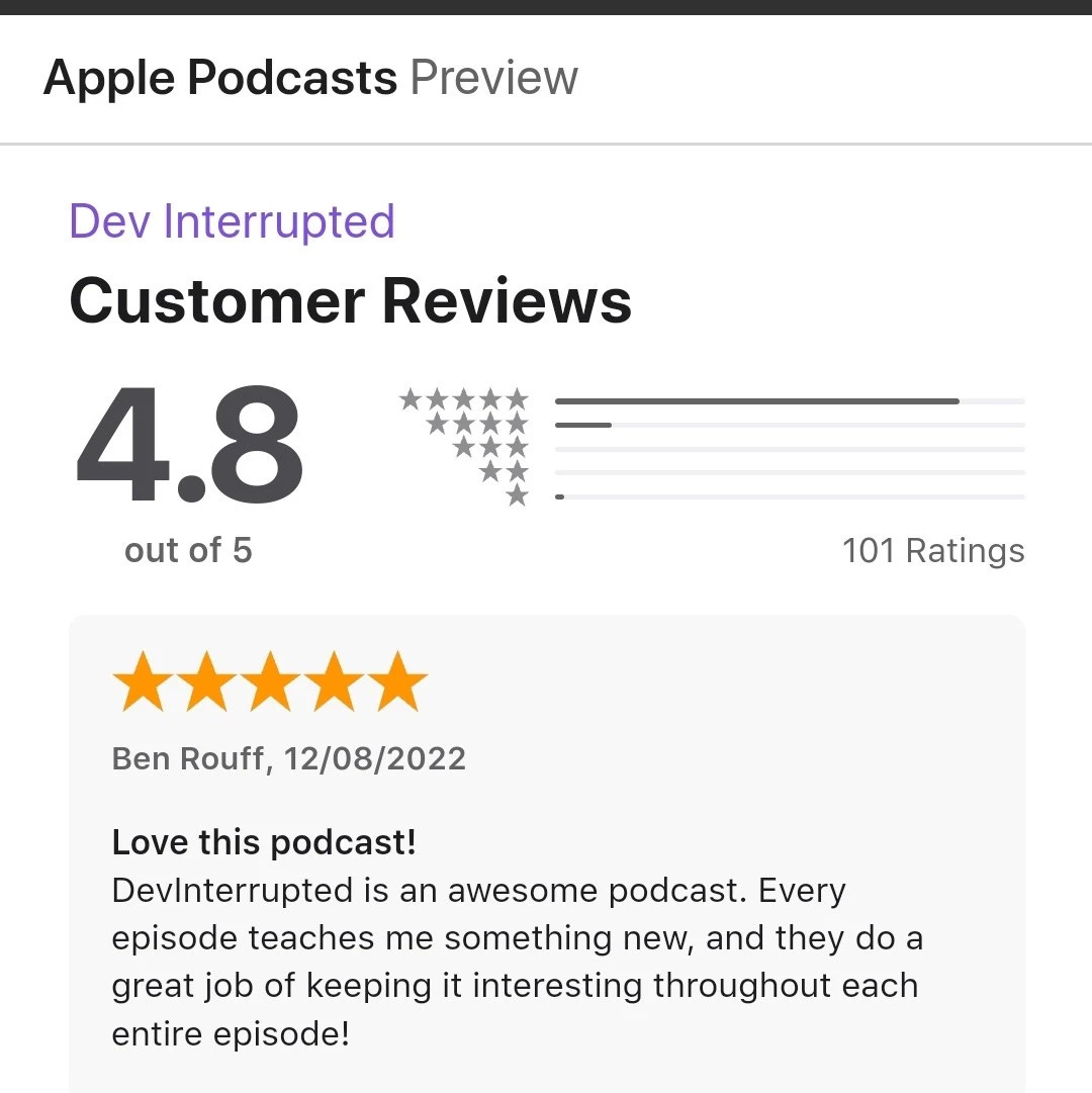 Want to prove your non-AI humanity in the best way? Leave a review for the Dev Interrupted podcast!