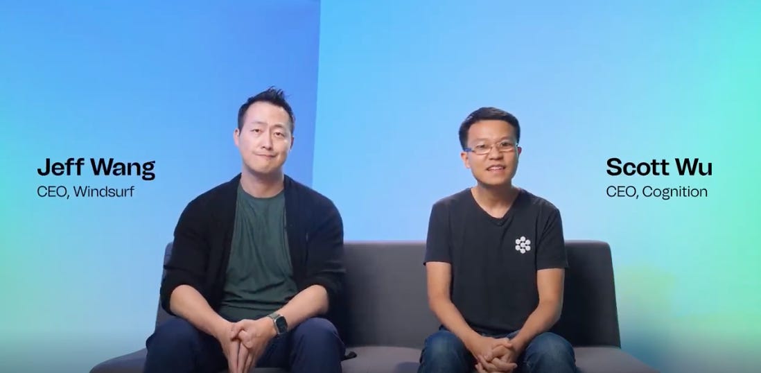 Windsurf is officially in the hands of Cognition after a twisty acquisition saga that caught the eye of the industry over a 72 hour period. What started as an eye-watering $3 billion OpenAI acquisition of Windsurf ended with Google poaching Windsurf’s CEO and co-founders for $2.4 billion… and then Cognition acquired the remaining company. With Cognition's ambitions in AI and code review, this merger comes down to how they leverage Windsurf's talent, technology, and maybe most of all: brand name.